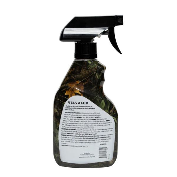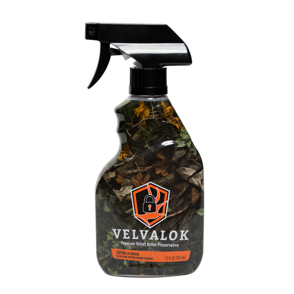The ONE and ONLY velvet antler preservative on the market that sets, dries, and preserves natural velvet while getting rid of bugs. Just spray and walk away! Preserves velvet in 72 hours! Non-toxic and safe to handle - no special tools, needles, or harmful chemicals required!