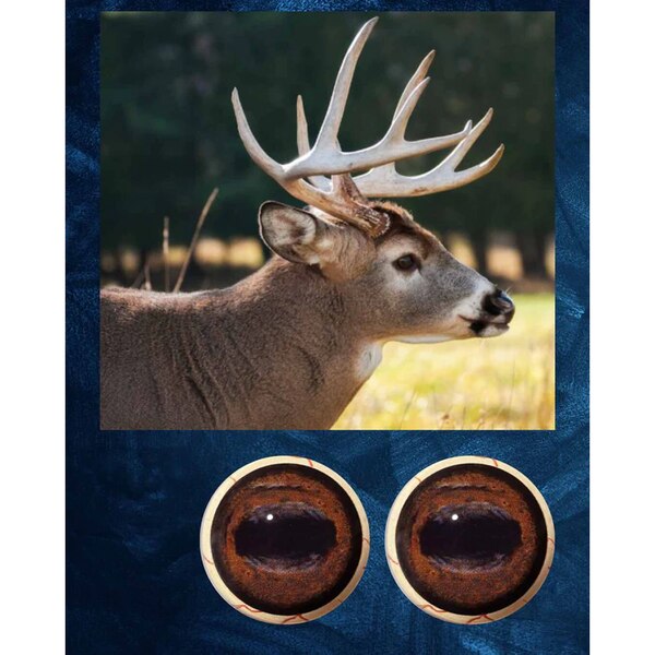 These Deer eyes were made by Basileia, a New Zealand glass eye company that supplies the world with premium lifelike glass eyes. Be sure to check out our full line of Basileia Glass Eyes!